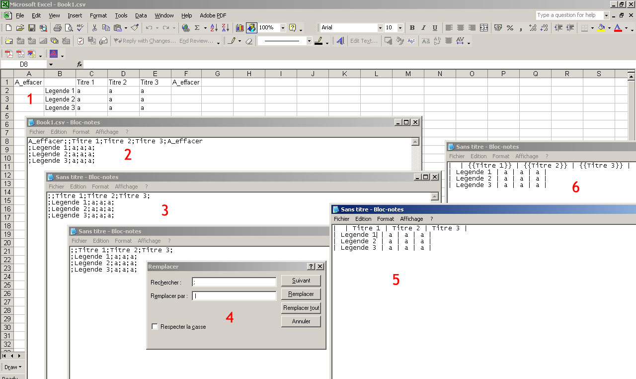 4 : Vous faites « Remplacer tout » et vous remplacez les « ; » par des « | »