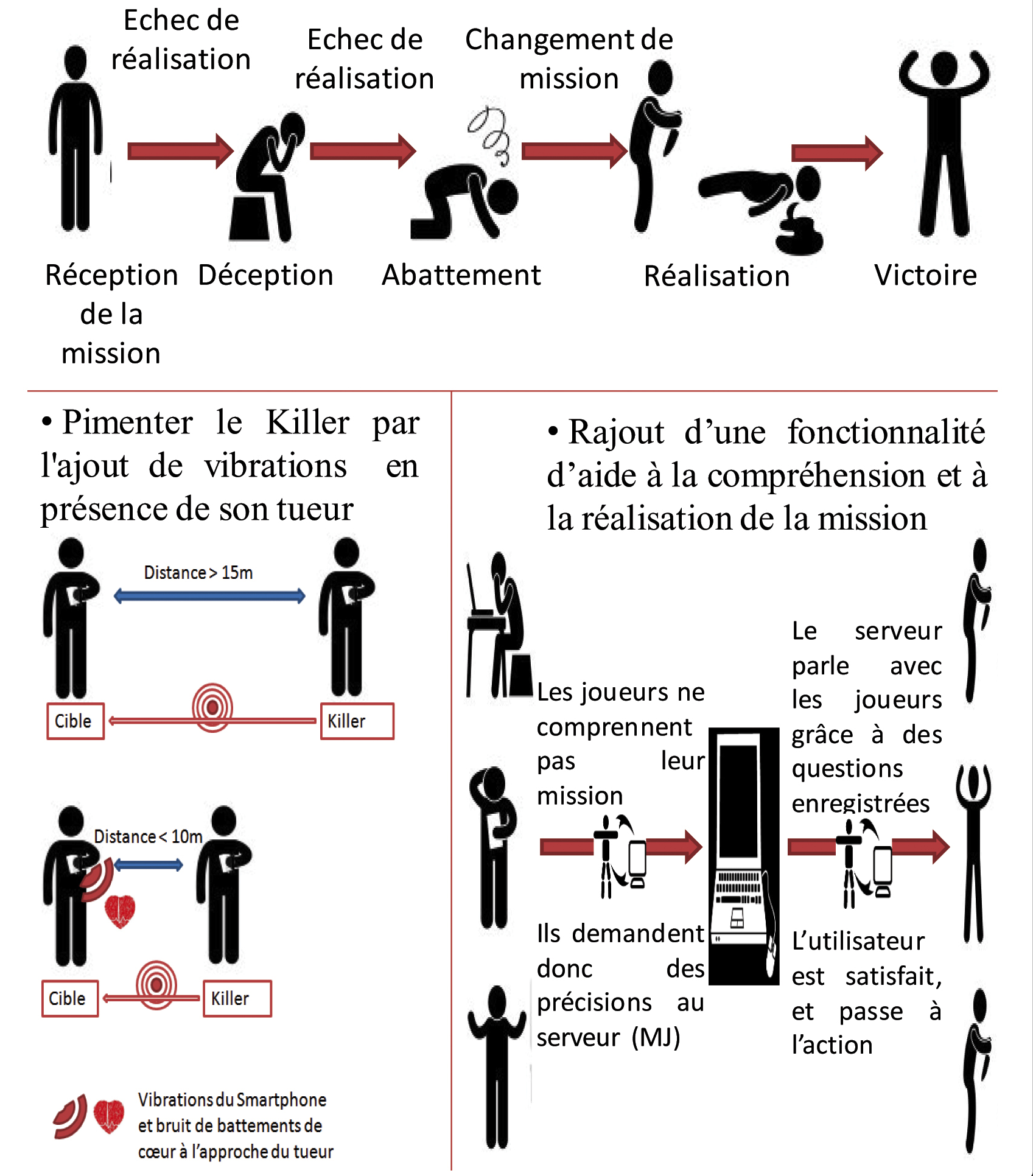 Être attentif à la démotivation, c’est une situation fréquente où l’un des membres arrête de jouer (raisons diverses comme une mission jugée trop difficile) et c’est compliqué de sortir du jeu (il faut tout de même trouver la personne qui doit nous tuer pour le prévenir). Donc il faut pouvoir relancer un joueur ou pouvoir lui donner la possibilité de sortir de la partie sans trop de mal.