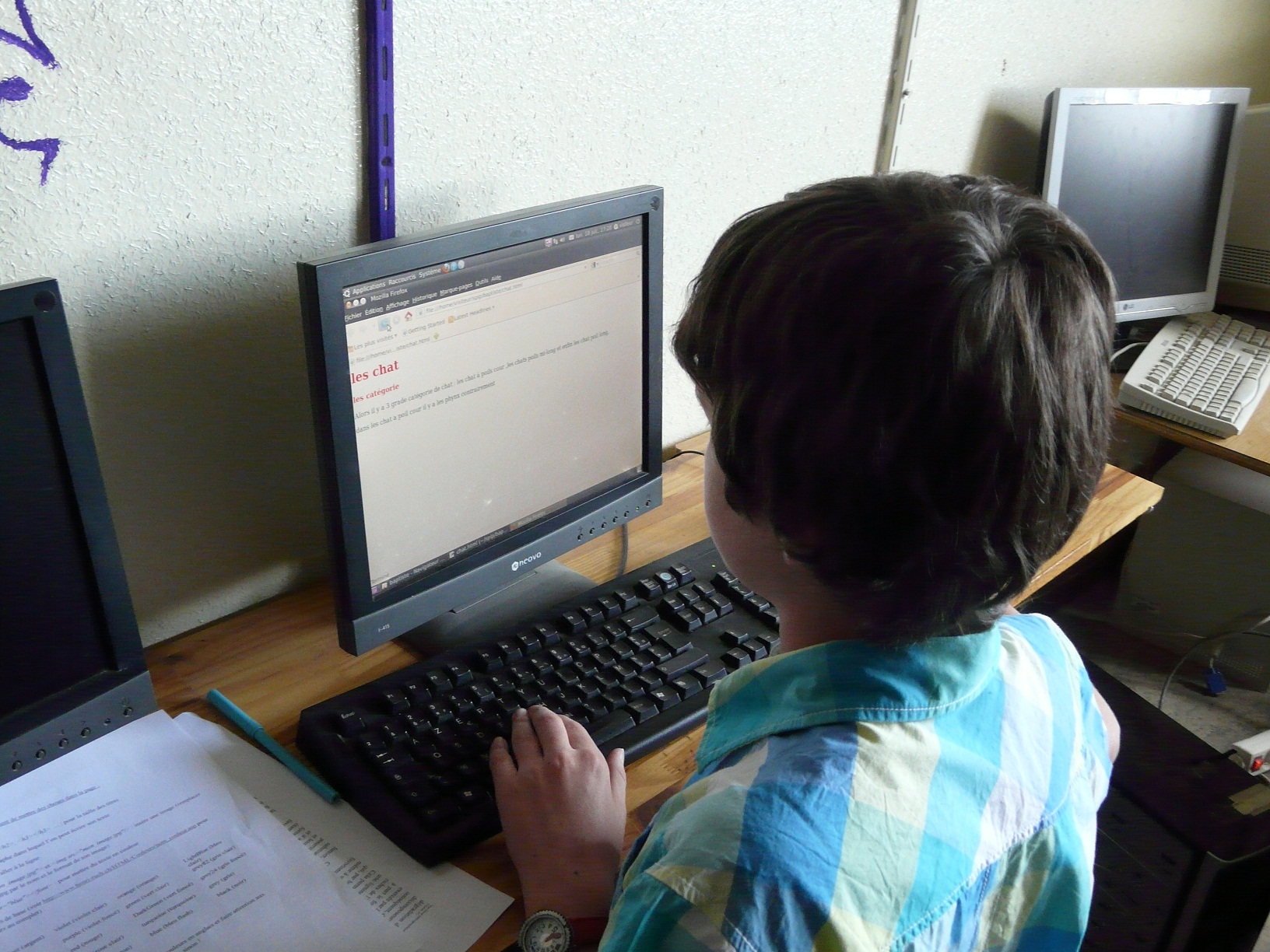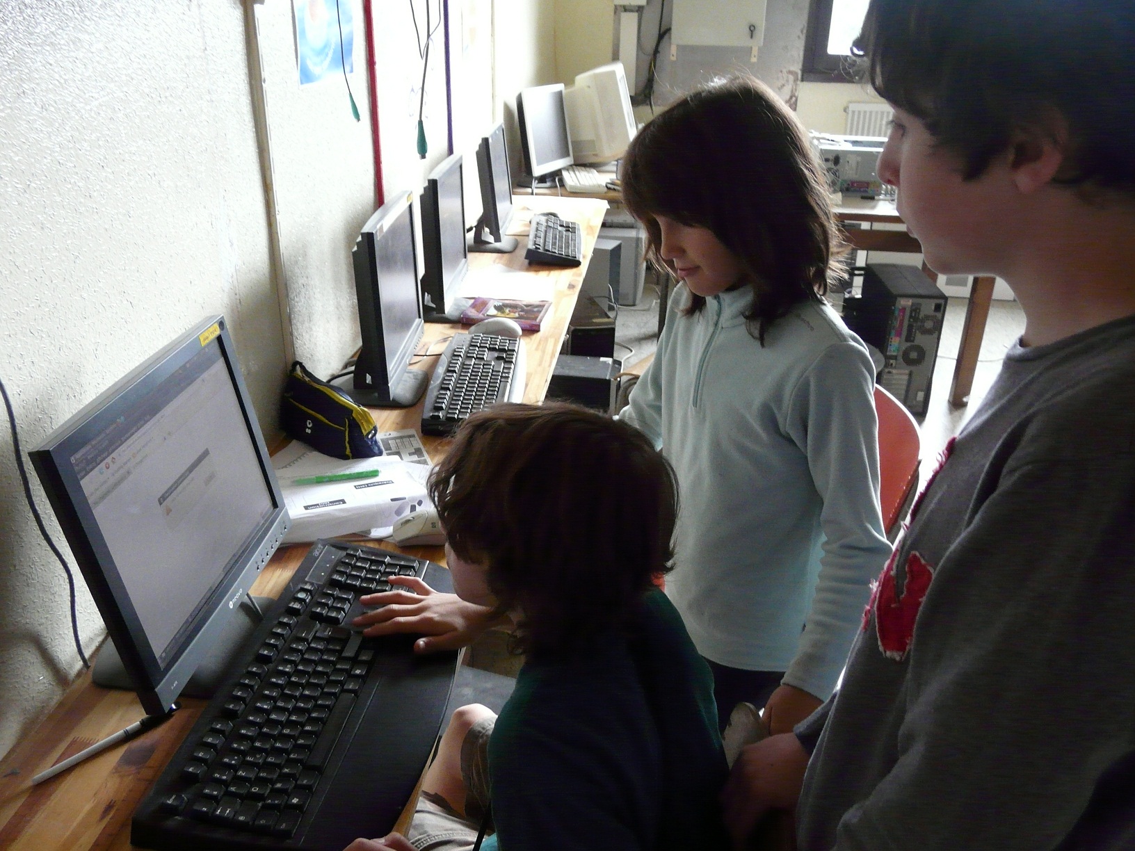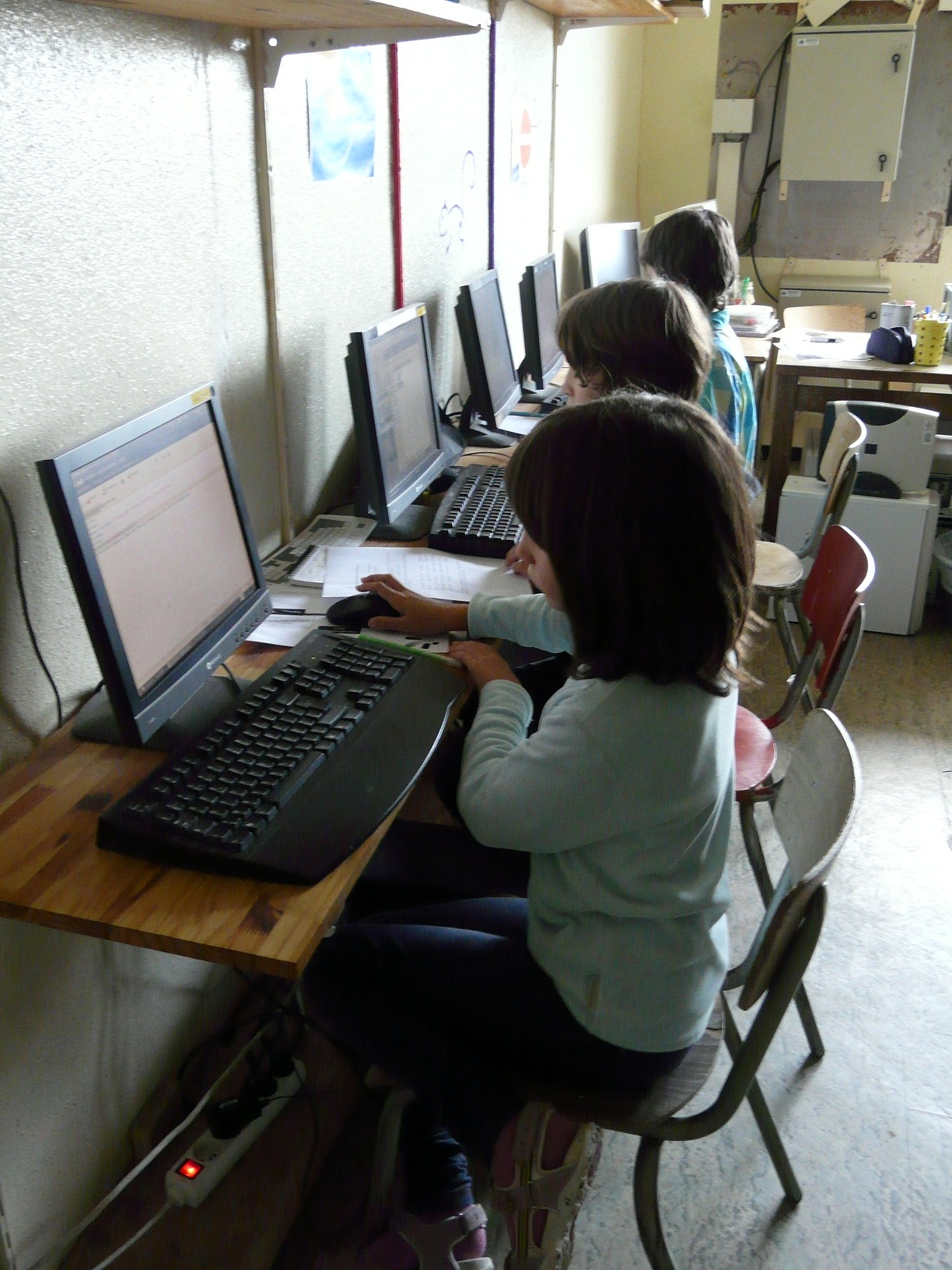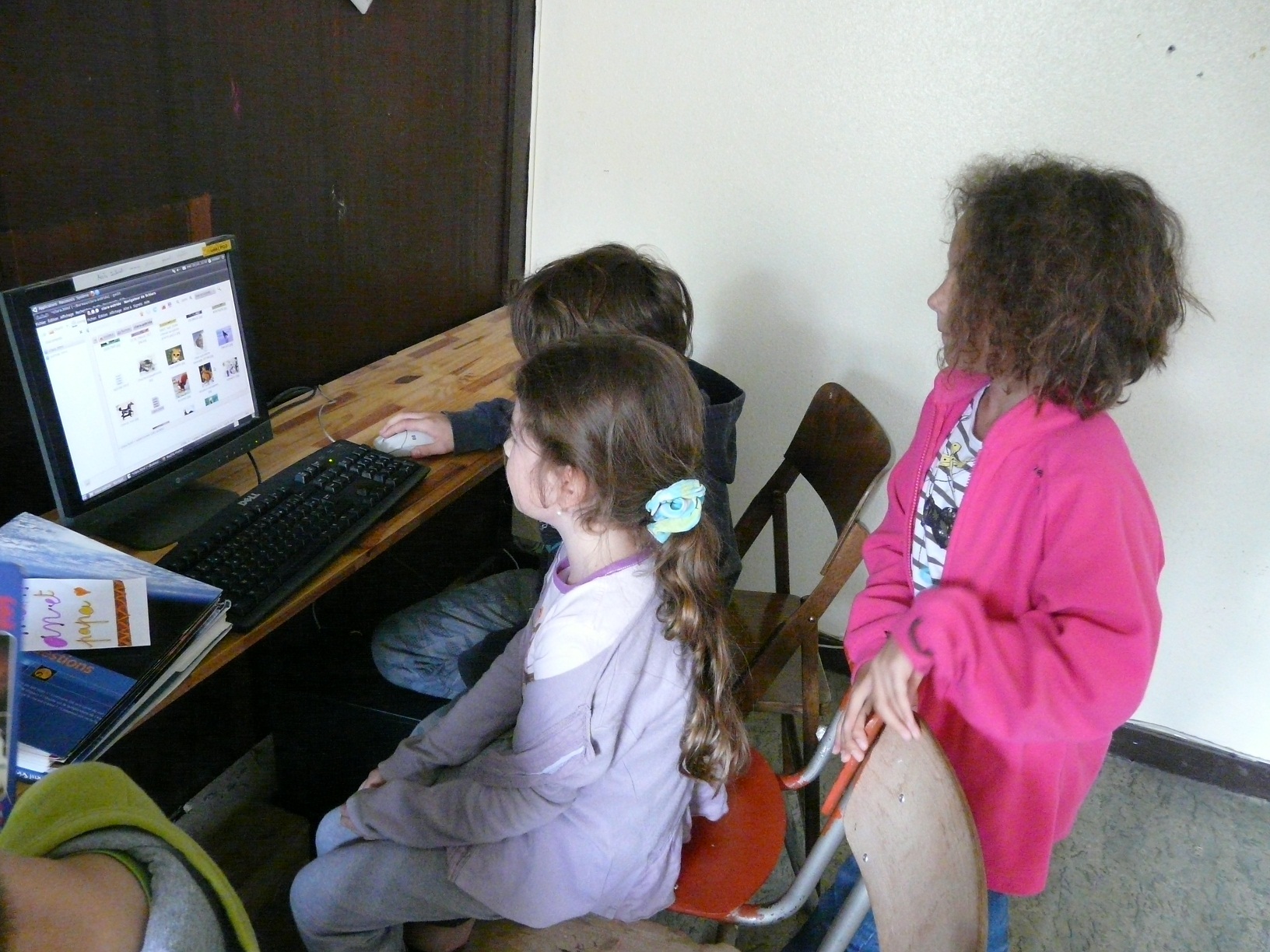 Aujourd’hui, l’animatrice étant en congé, les enfants continuent sous la surveillance d’un animateur à côté leurs sites web.