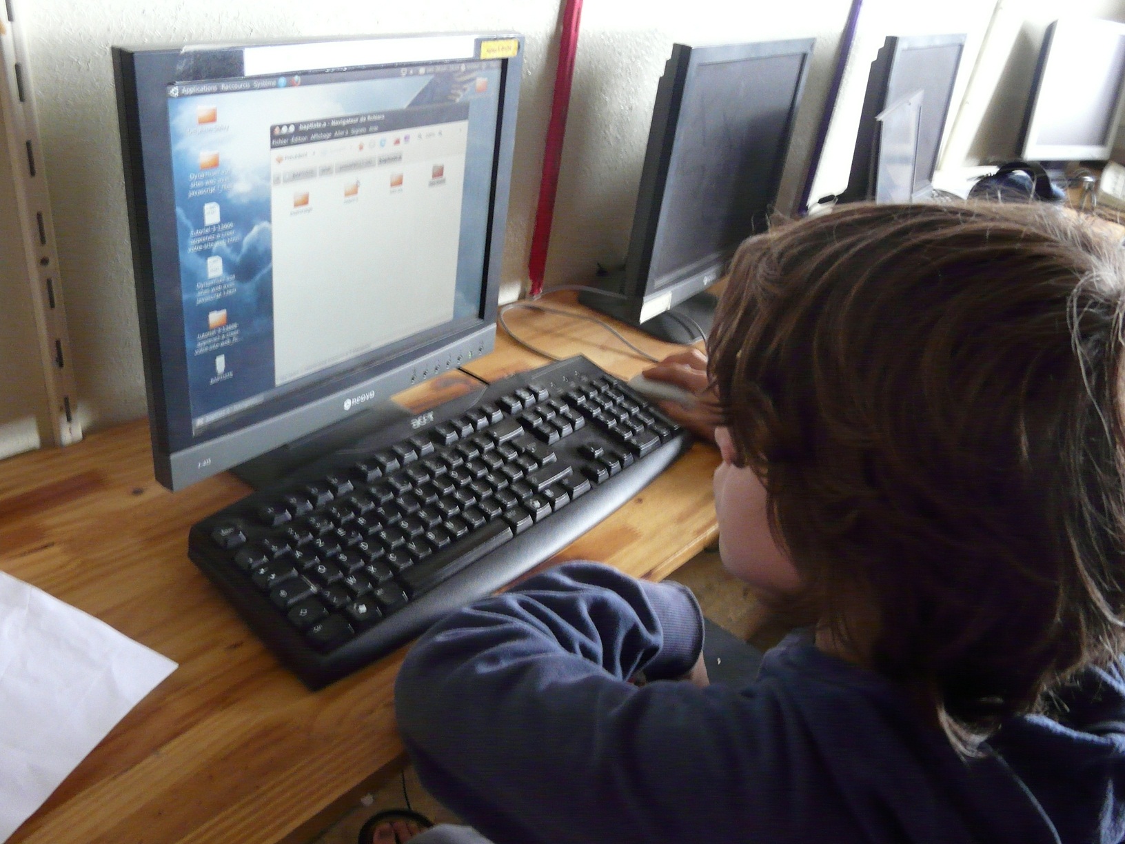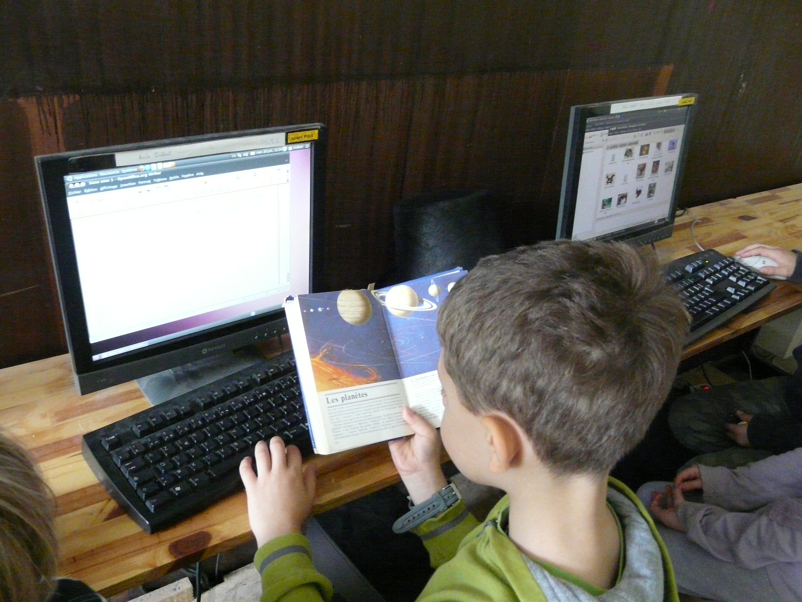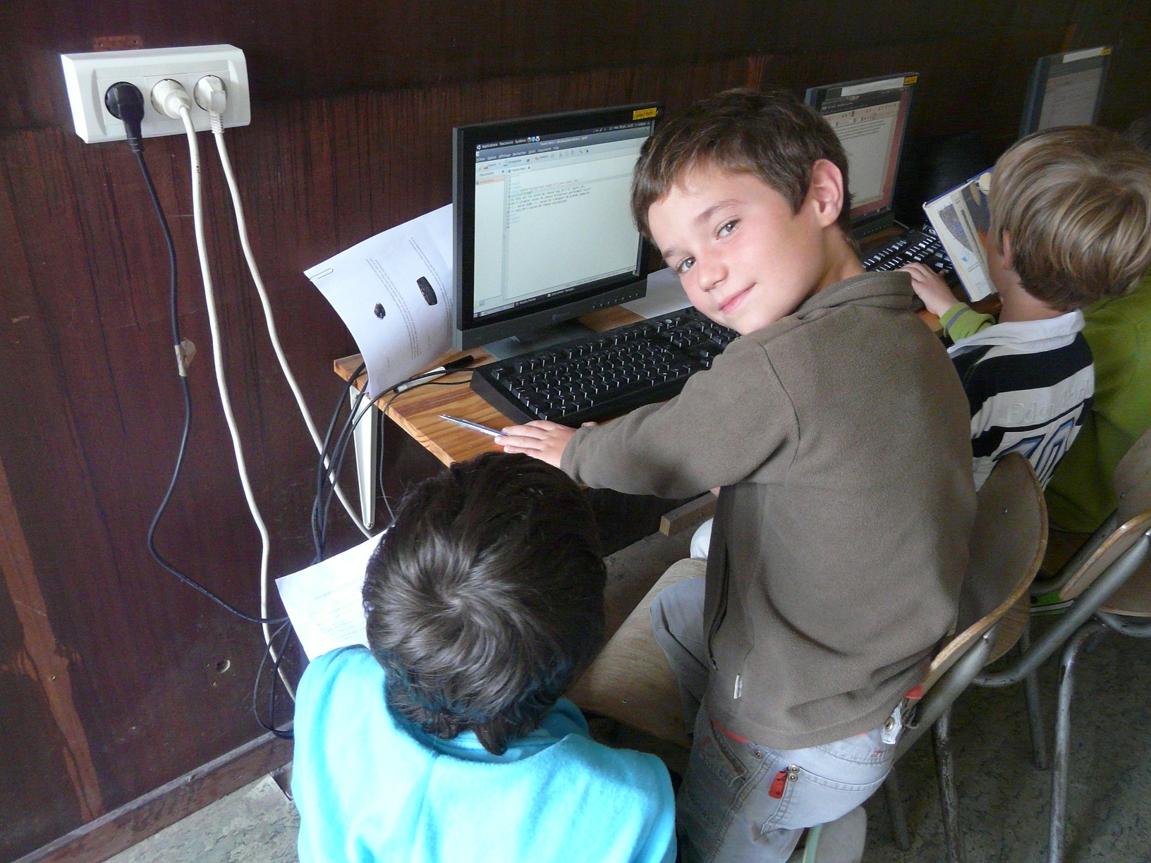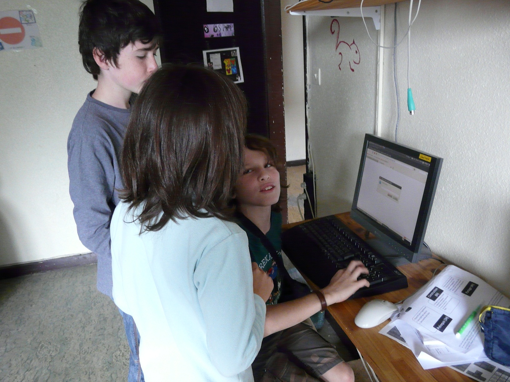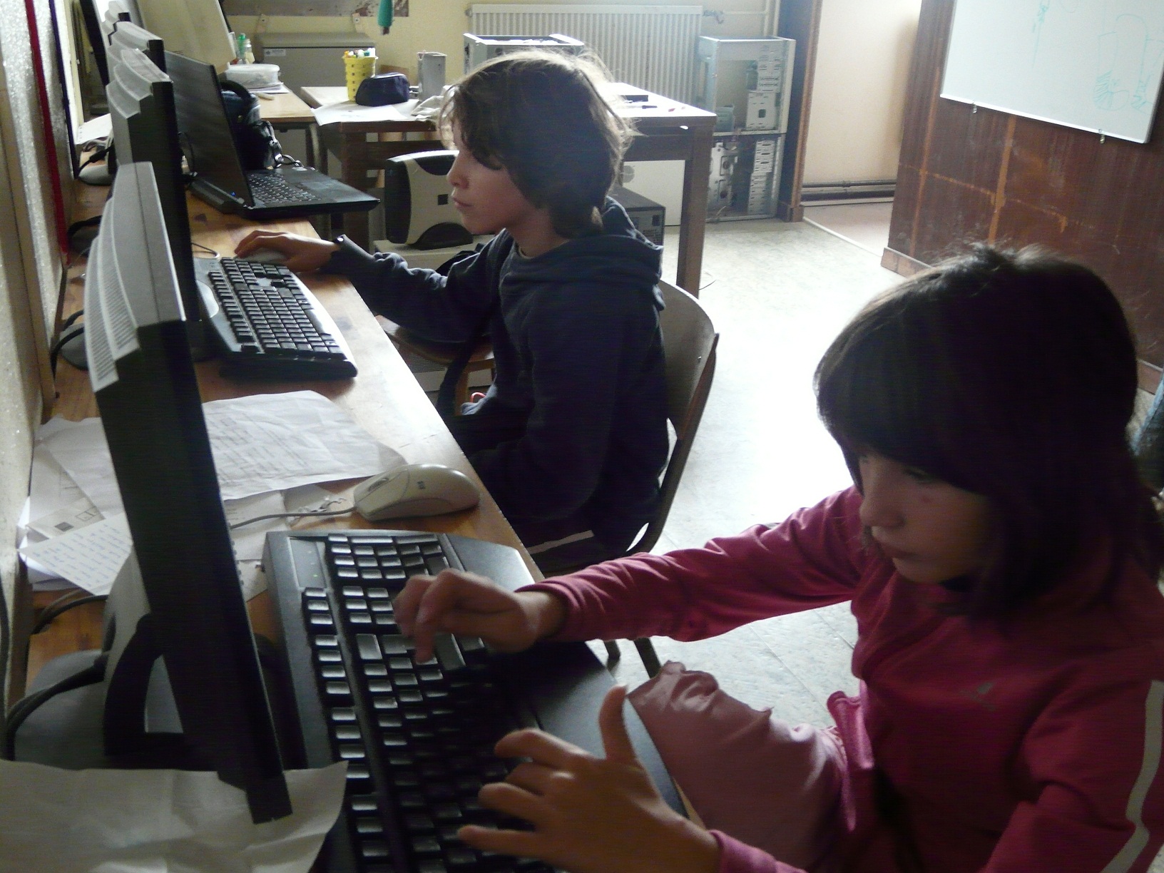 Aujourd’hui, l’animatrice étant en congé, les enfants continuent sous la surveillance d’un animateur à côté leurs sites web.