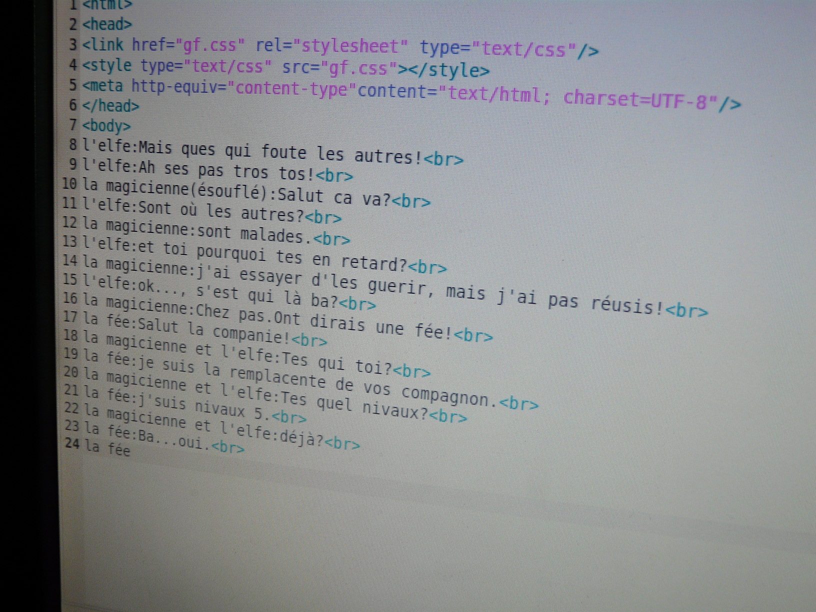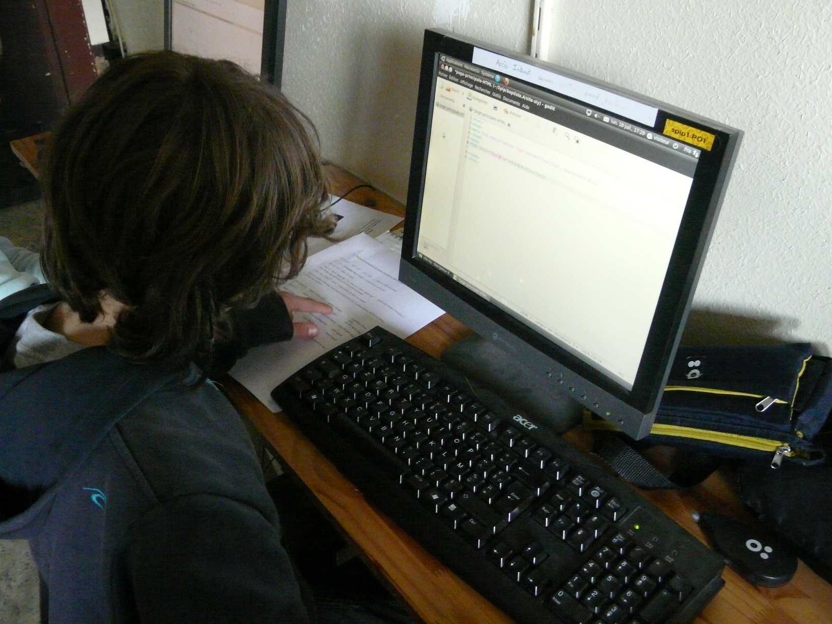 L’après-midi se divise entre un Poule/Renard/Vipère ardu et une nouvelle AS où les enfants continuent l’apprentissage du HTML (liens entre les pages, insertion d’images) et découvrent à leur dépend ce qu’il se passe lorsqu’ils ne ferment pas une balise …