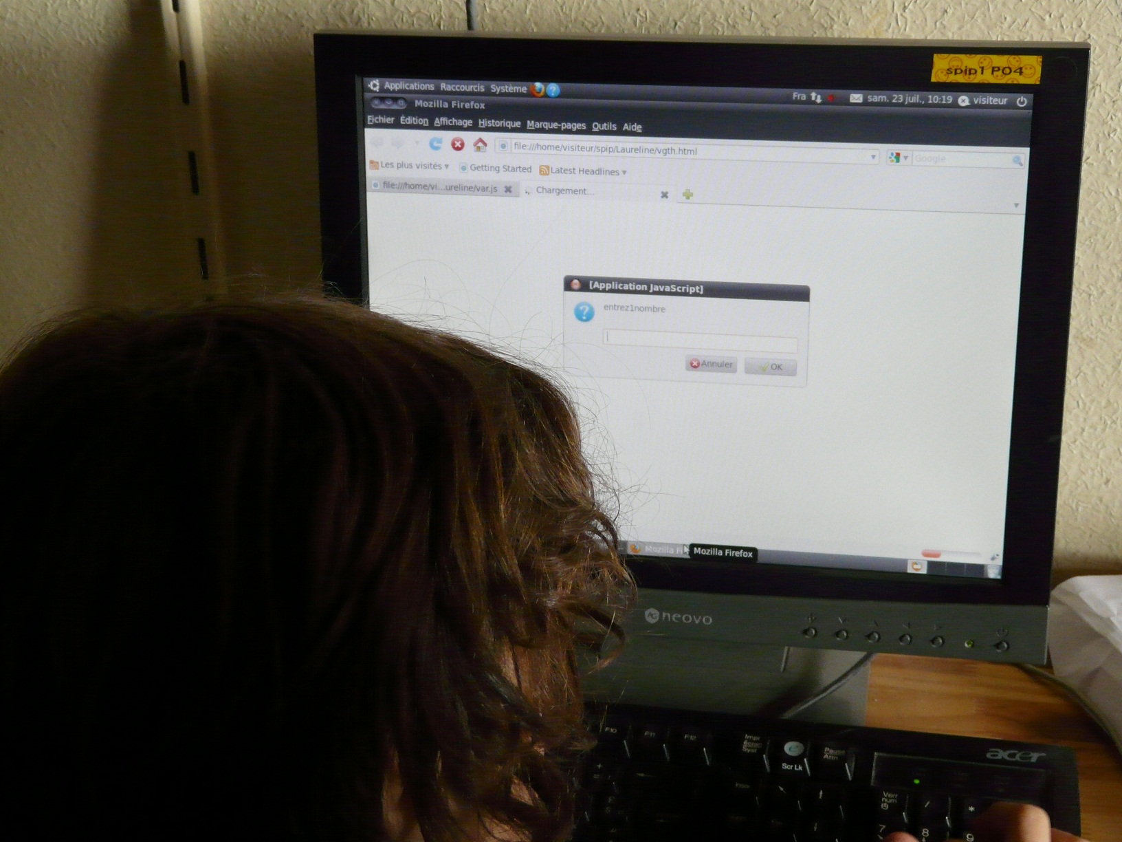 La deuxième partie de l’après-midi se déroule tranquillement à continuer les sites web et Baptiste T. en profite pour commencer à apprendre un peu de Javascript, dans le but de dynamiser sa page à l’aide d’un petit jeu : le jeu du Plus ou Moins.