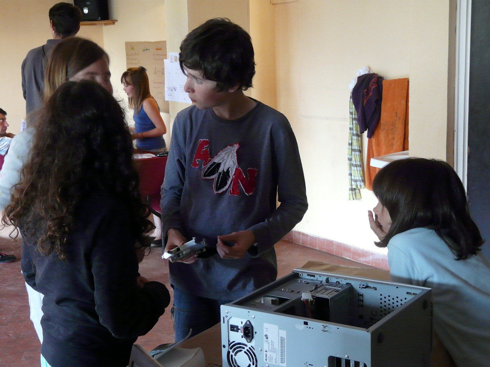 En cette matinée pluvieuse, les nouveaux Spipeurs (Laureline, Baptiste T. et Baptiste A.) se réunissent en salle Spip 1. Rapide discussion pour déterminer le niveau de chacun (qui se limite surtout à l’utilisation basique d’un ordinateur – jeux + logiciels de traitement de texte) puis nous faisons un rapide saut à l’intérieur de l’ordinateur afin de découvrir les différents composants permettant de faire tant de choses avec celui-ci.