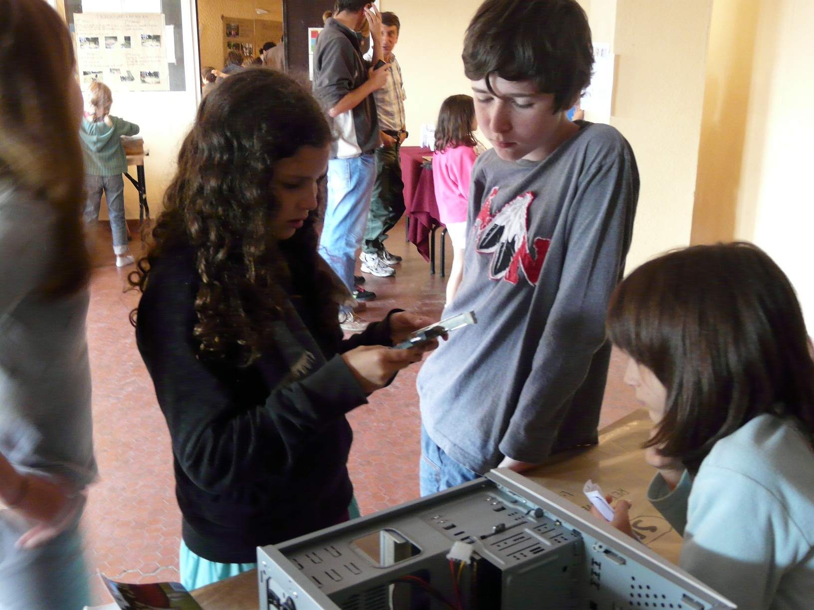 Après manger, c’est la retransmission des enfants qui commence. Beaucoup de parents sont venus voir le travail de tout le monde. Baptiste et Laureline ont donc pu expliquer leur site d’espionnage et la manière dont ils ont réalisé l’épisode avec Audacity ainsi que de le faire écouter.