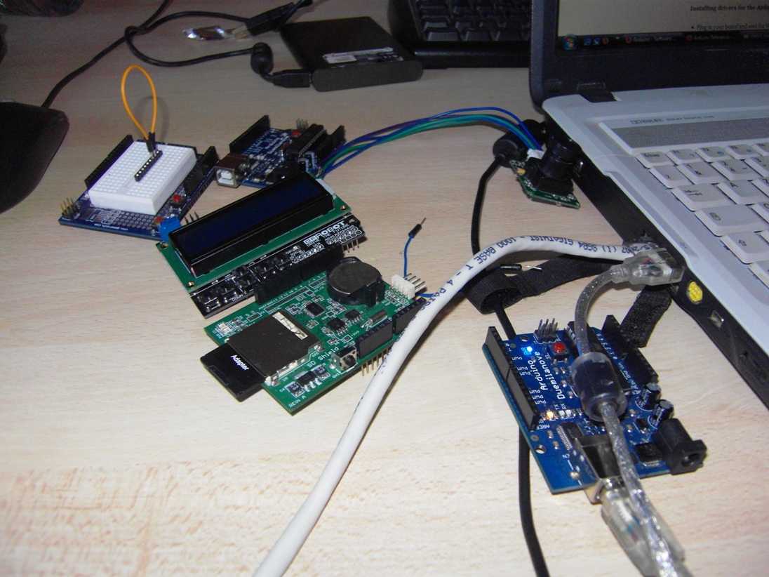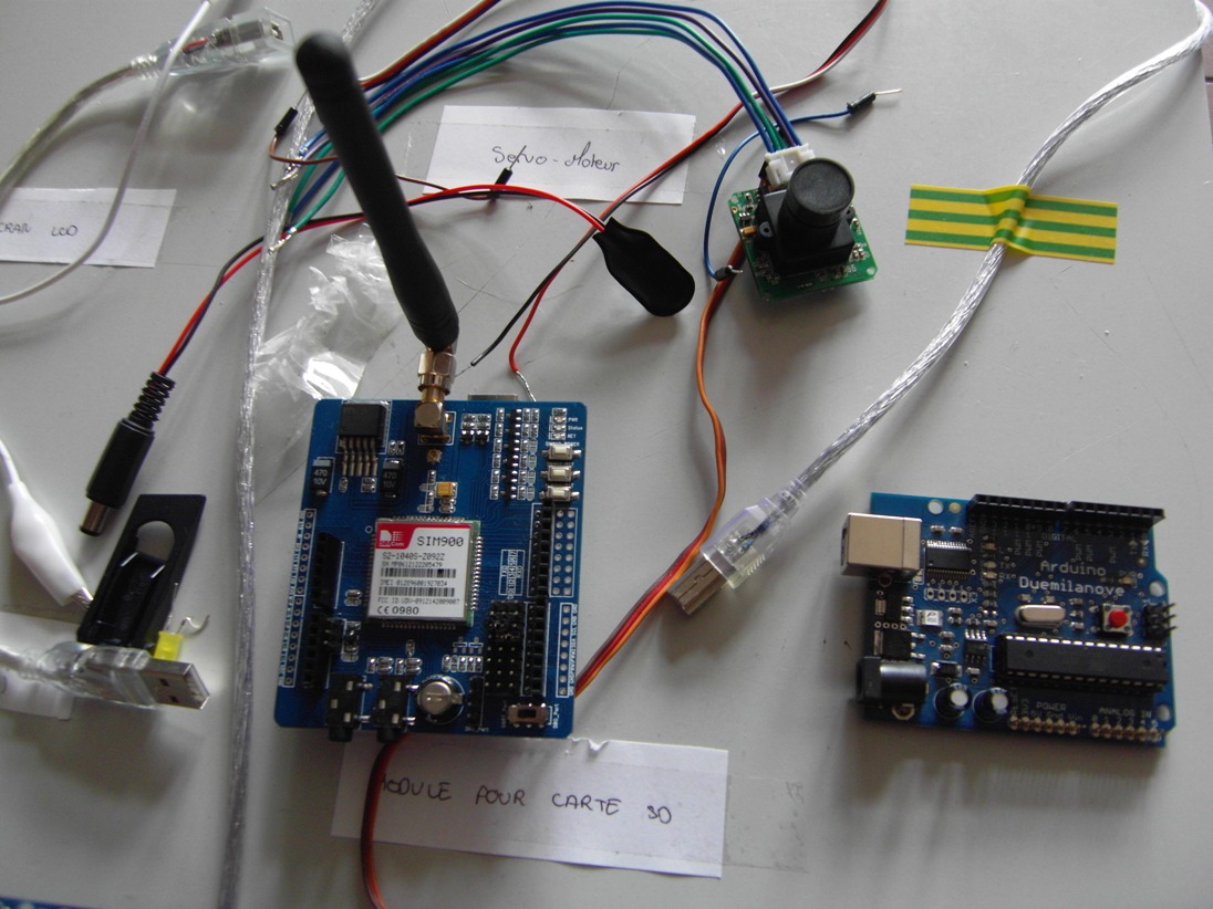 Aujourd’hui nous avons réussi à configurer les écran LCD et nous avons trouvé plein de programmes en open source ! Certain pour pour la camera, le module GSM (qui semble peu fonctionner), servomoteurs et même pour l’ensemble des modules branchés en séries ! Bref nous avons de plus en plus de clés en main, il nous reste à les maîtriser pleinement pour faire fonctionner notre montage...